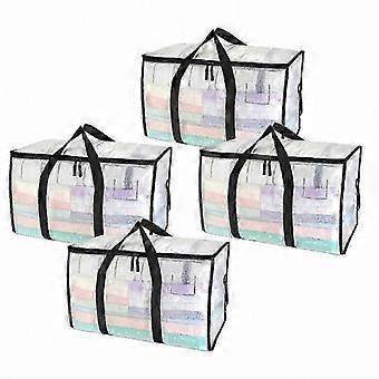 Heavy Duty Clear Storage Bags 90L 4 Pack with Reinforced Handles Waterproof Zip Closure