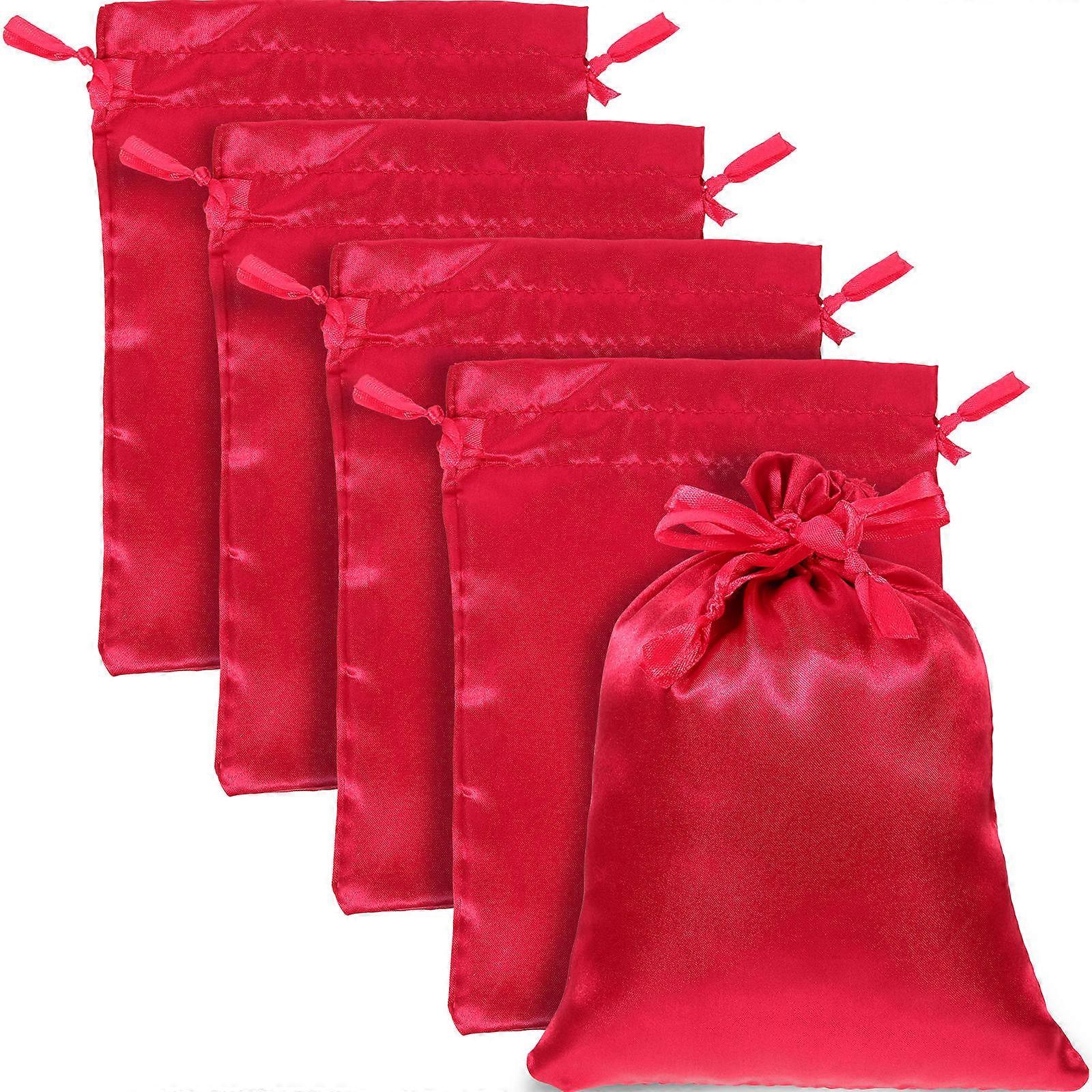 Red Satin Jewelry Bags Drawstring for Gift Packaging 100Pcs