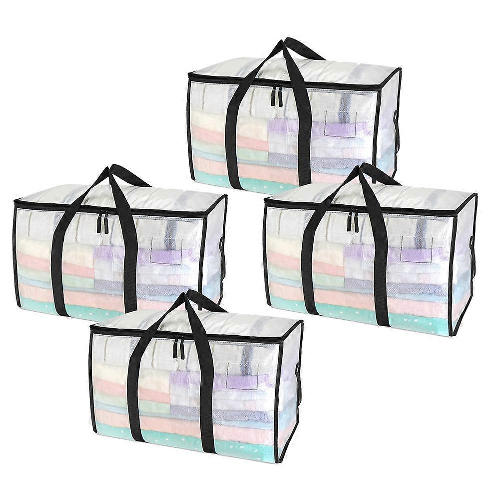 Clear Moving Bags Heavy Duty - 4 Pack 90L Storage Bags with Strong Handles, Zipper, Waterproof, Semi-Transparent