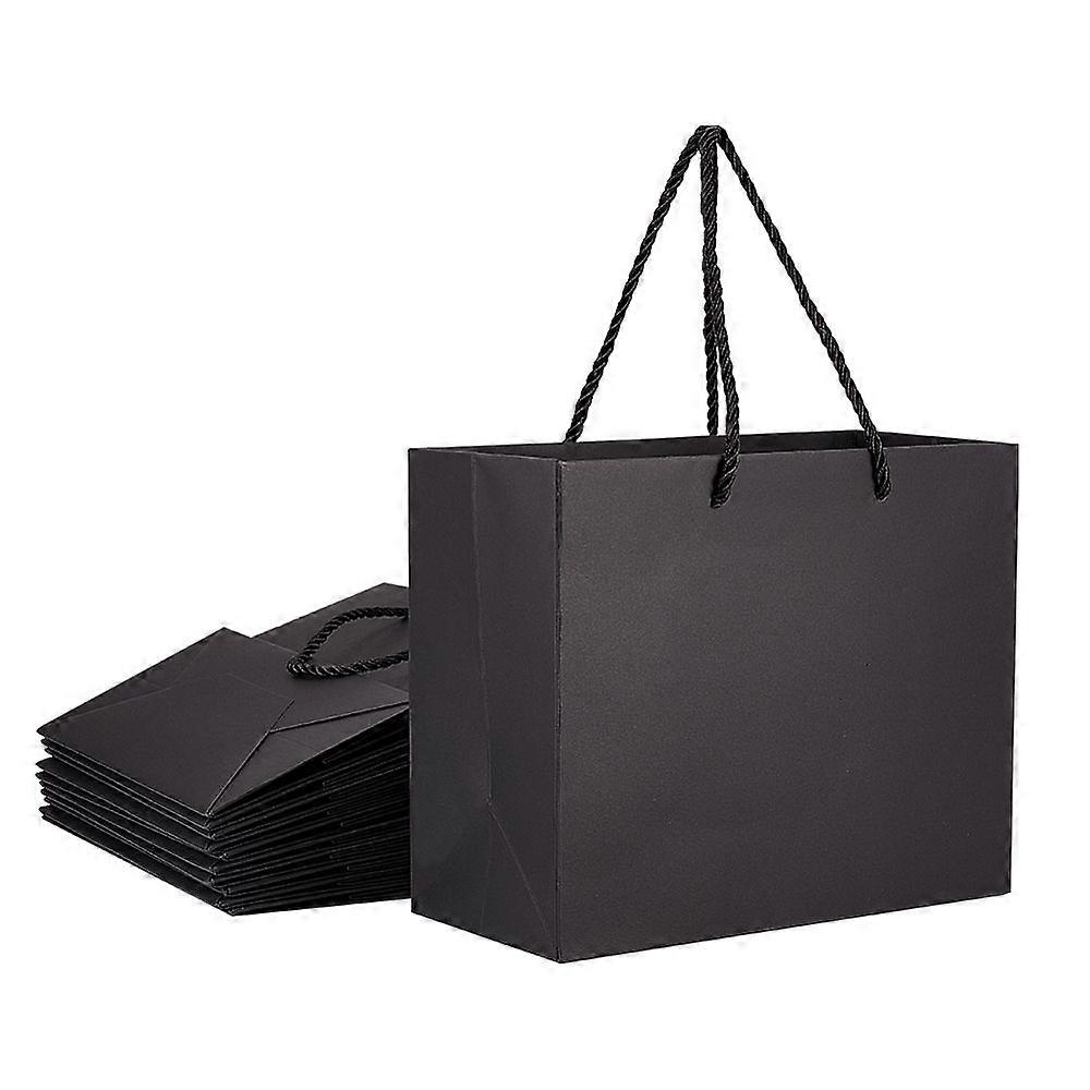 Kraft Paper Bags Gift Shopping Bags with Nylon Cord Handle Rectangle Black 22x10x18cm
