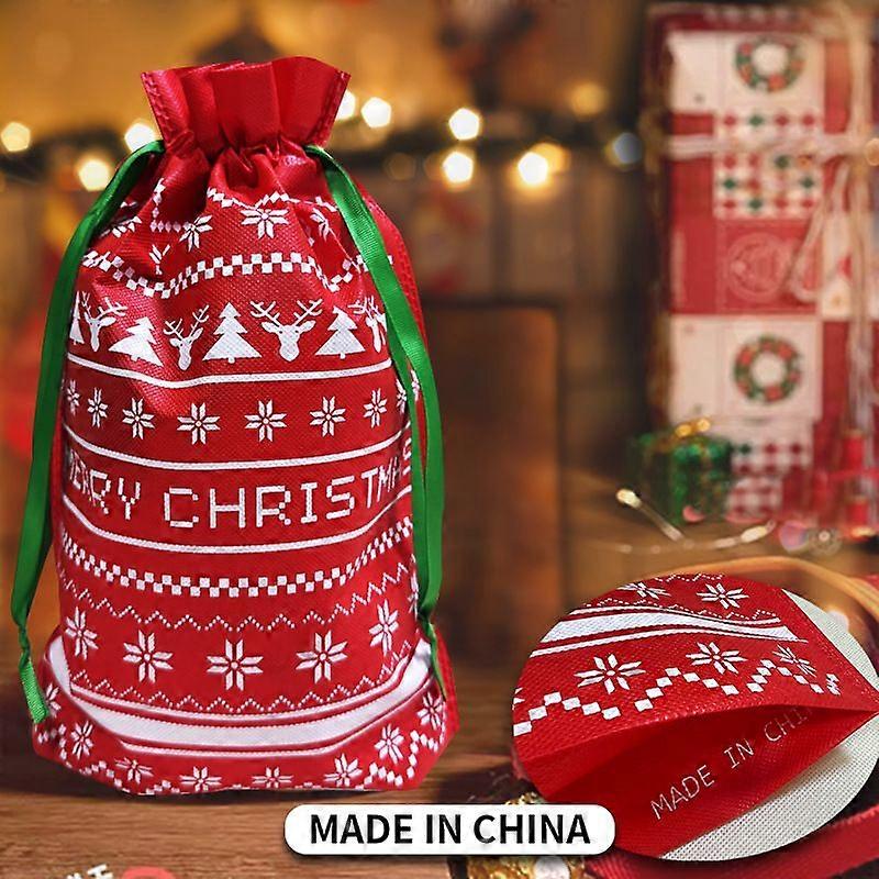 Christmas Drawstring Gift Bags Nonwoven Santa Claus Treat Bags Party Favor Pouches
