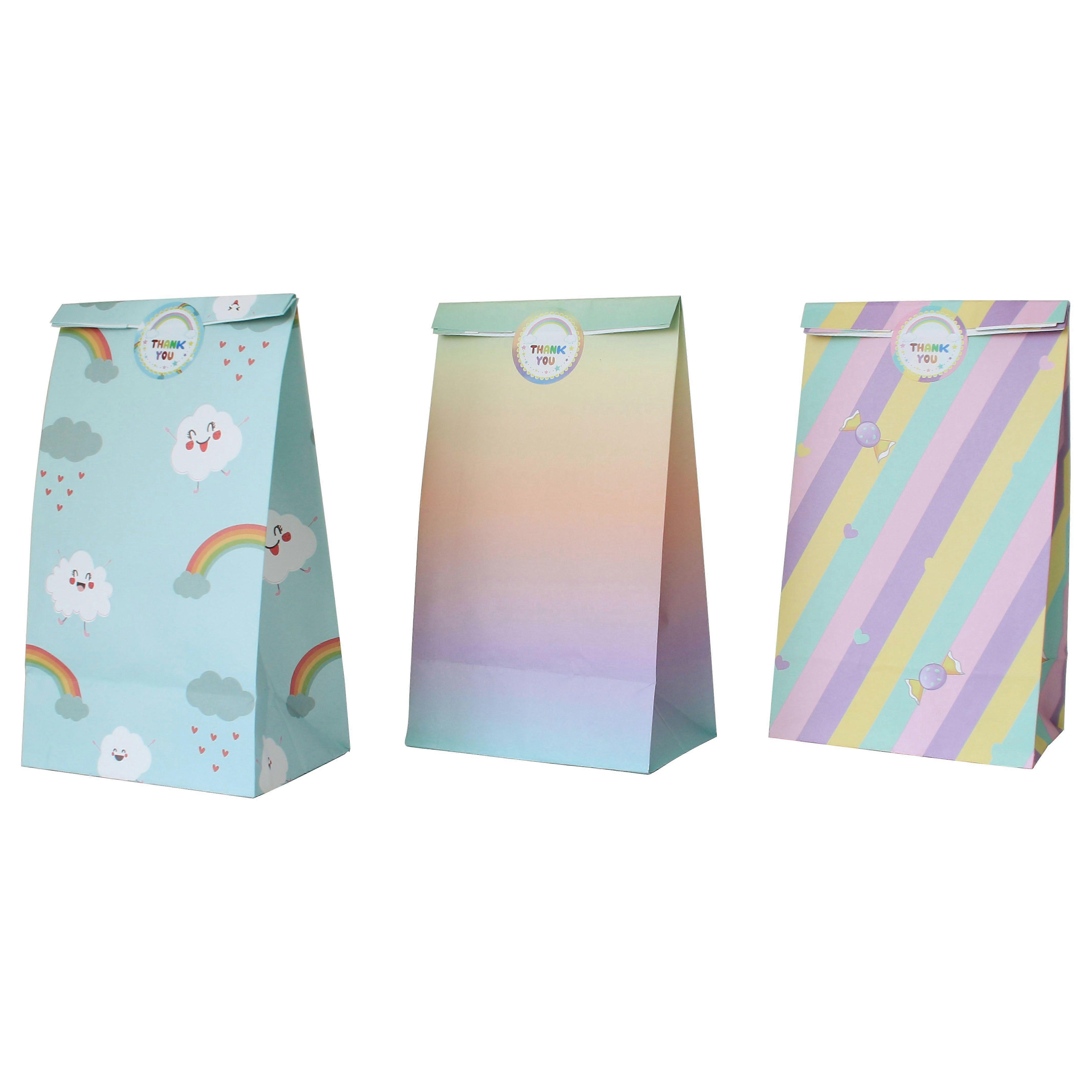 Rainbow Theme Paper Gift Bags with 3 Mixed Designs, 12x7.5x20cm, for Kids, Birthdays and Weddings