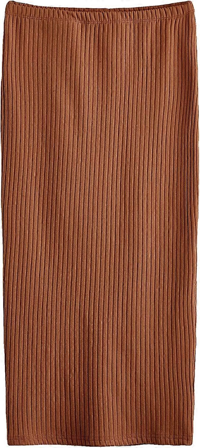 Women's Basic Plain Stretchy Ribbed Knit Split Full Length Skirt S-2XL