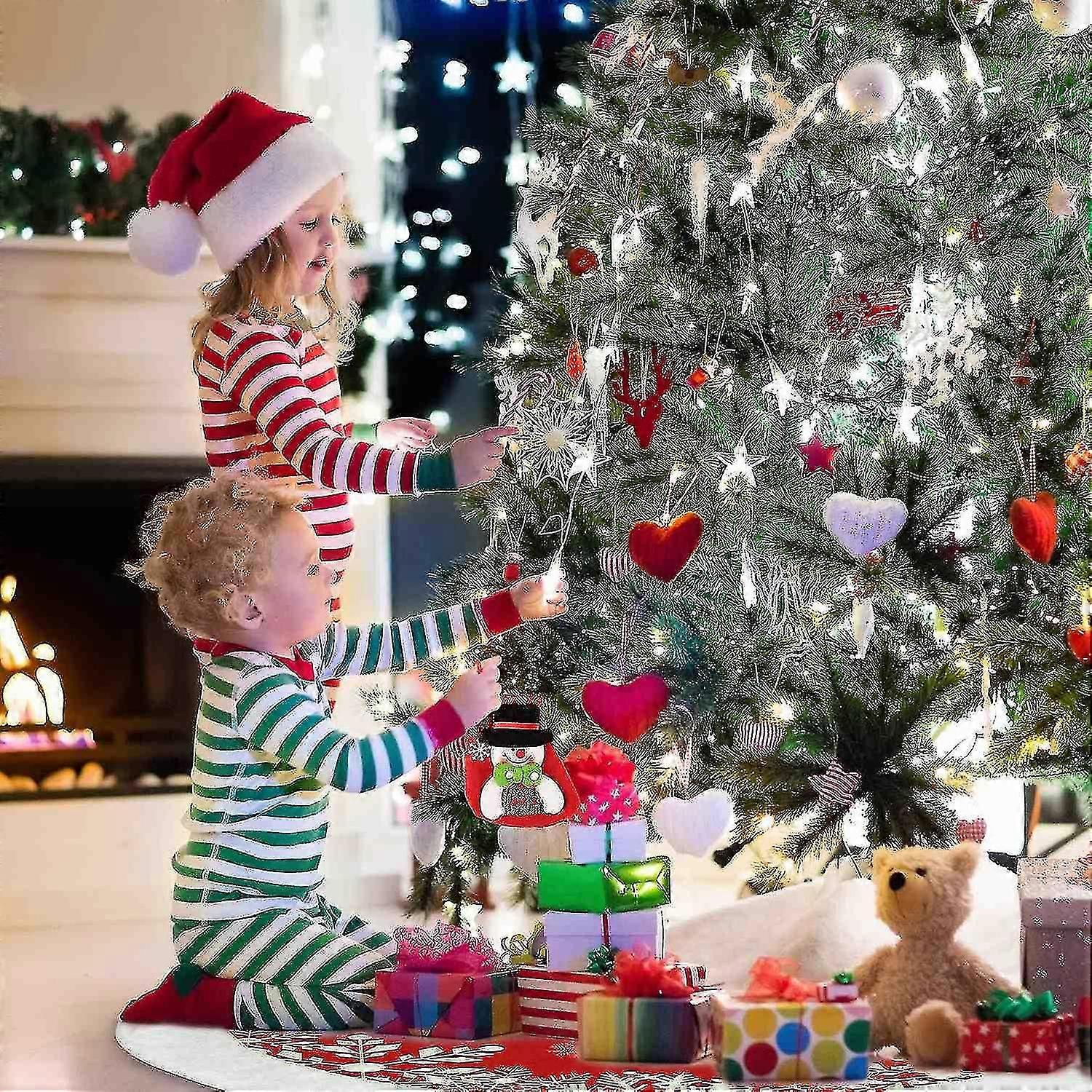 Christmas Tree Skirt 48 Inches Large Thick Snowy White Mat The product is shipped based on the color or size of the main image of the product page. Wide Applicability: 122cm/48 in diameter, suitable for any type of tree of any size, even for artificial trees, the best assistant to create a Christmas atmosphere.High-quality Fabric: This tree skirt is made of no smell high-quality thicken soft white plush and short plush printing, non-woven material, and the snowflake and Christmas print create a festive atmosphere, which is the perfect choice for Christmas tree decoration.Double-layer Design: The top edge is white faux fur and middle short plush print, the bottom is non-woven, well-made and durable, you can use it year after year.Easy to Install: The shackle is sewn on the edge of the tree skirt with three magic wands at the opening, making it easy to hold the tree skirt under the Christmas tree.Cleaning Assistant: Christmas tree skirt can effectively prevent the floor from being damaged by pine needles or sap, and restore the clean floor after the holiday.Item name: Christmas snowflake tree skirtMaterial: White plush and short plush printing, non-wovenColor: Red and whitePackaging included: 1*Christmas snowflake tree skirtApplication: suitable for any type of tree of any size, even for artificial trees, the best assistant to create a Christmas atmosphere