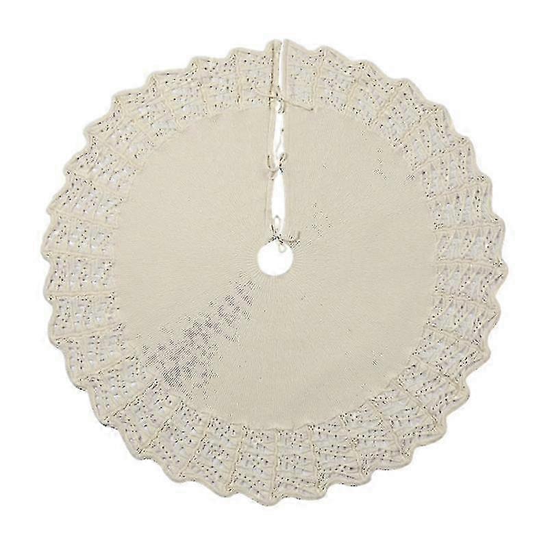 2025 48 Inch Knitted Christmas Tree Skirt With Wavy Edges Ivory White