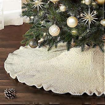 Ruffle knitted Christmas tree skirt heavy yarn knitted Christmas tree collar with drawcord closure
