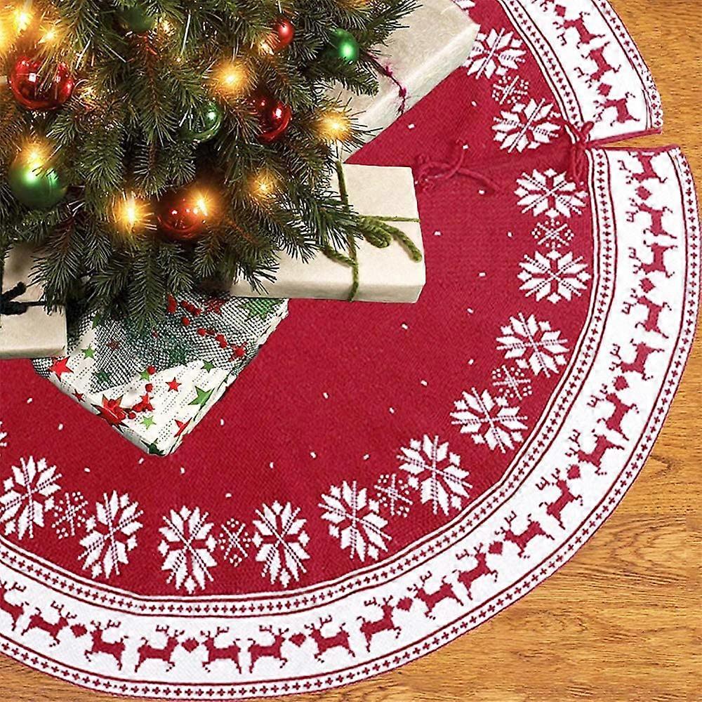 Dww-Christmas Tree Skirt, Tree Stand Cover, 122cm/48 Inch Fir Rug Knitted Tree Skirt with Snowflake and Elk Print for Christmas Decoration