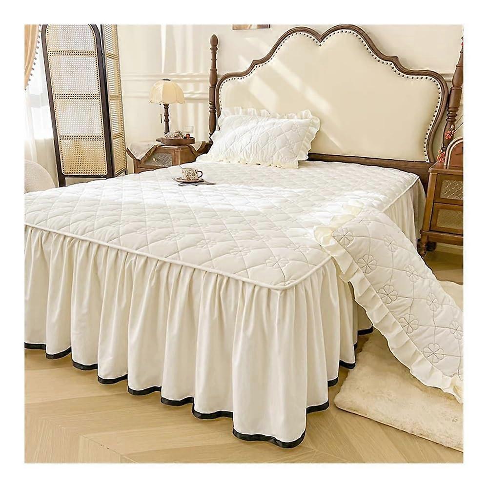 Quilted bed skirt, thick day blanket, ruffles, bed cover (Mibai, King 180 x 200 cm)