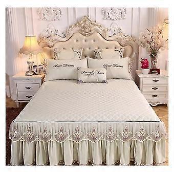 Bed Skirt Embroidered with quilted cotton bedspread, solid mattress cover, pillowcase (Beige A, 150x200)