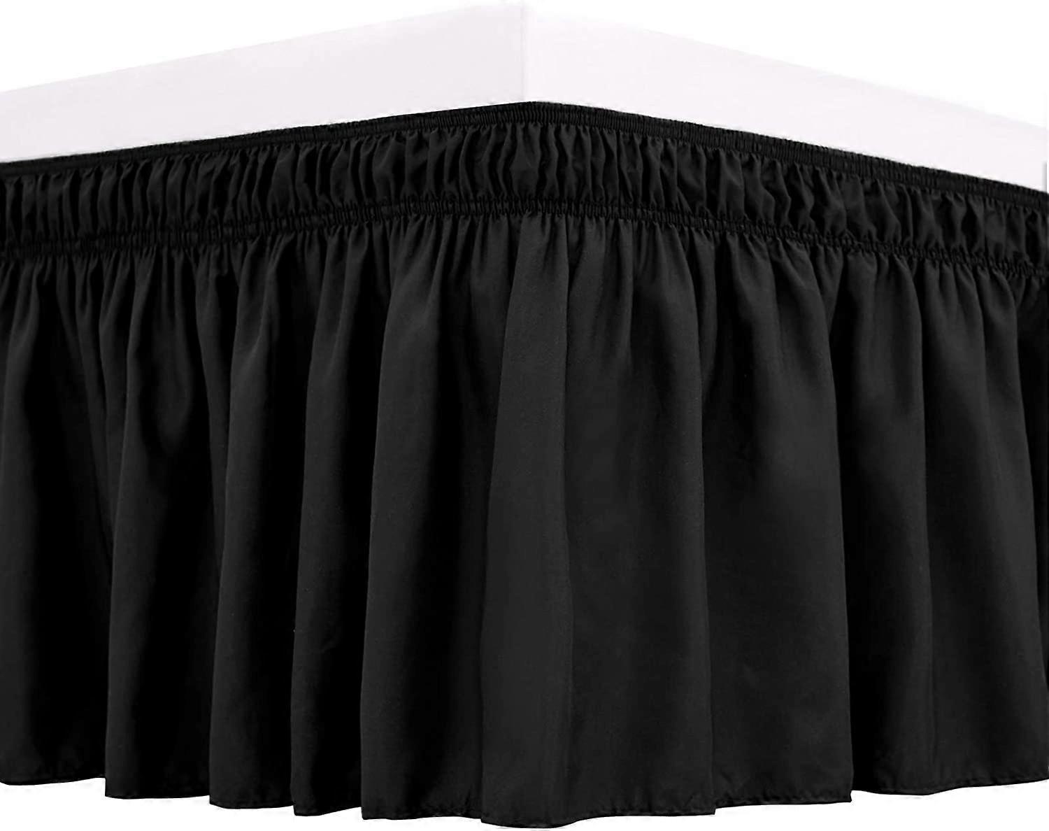 Bed Skirt Wrap Around Elastic Dust Ruffles Solid Color Wrinkle and Fade Resistant