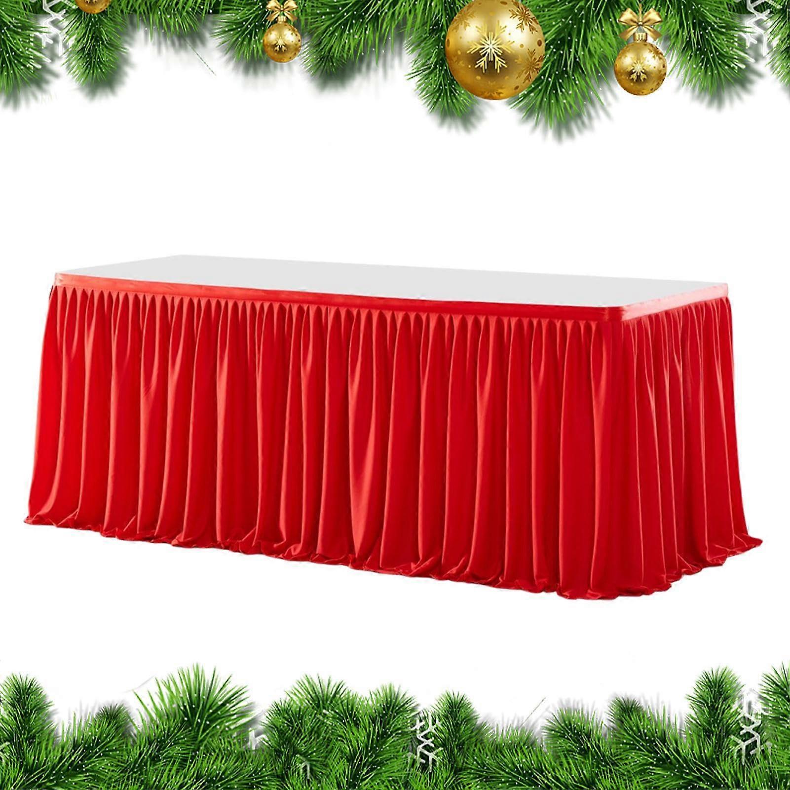 Christmas Table Skirt Rectangle Fabric Fitted Cover for Indoor Outdoor Party Event 9ft