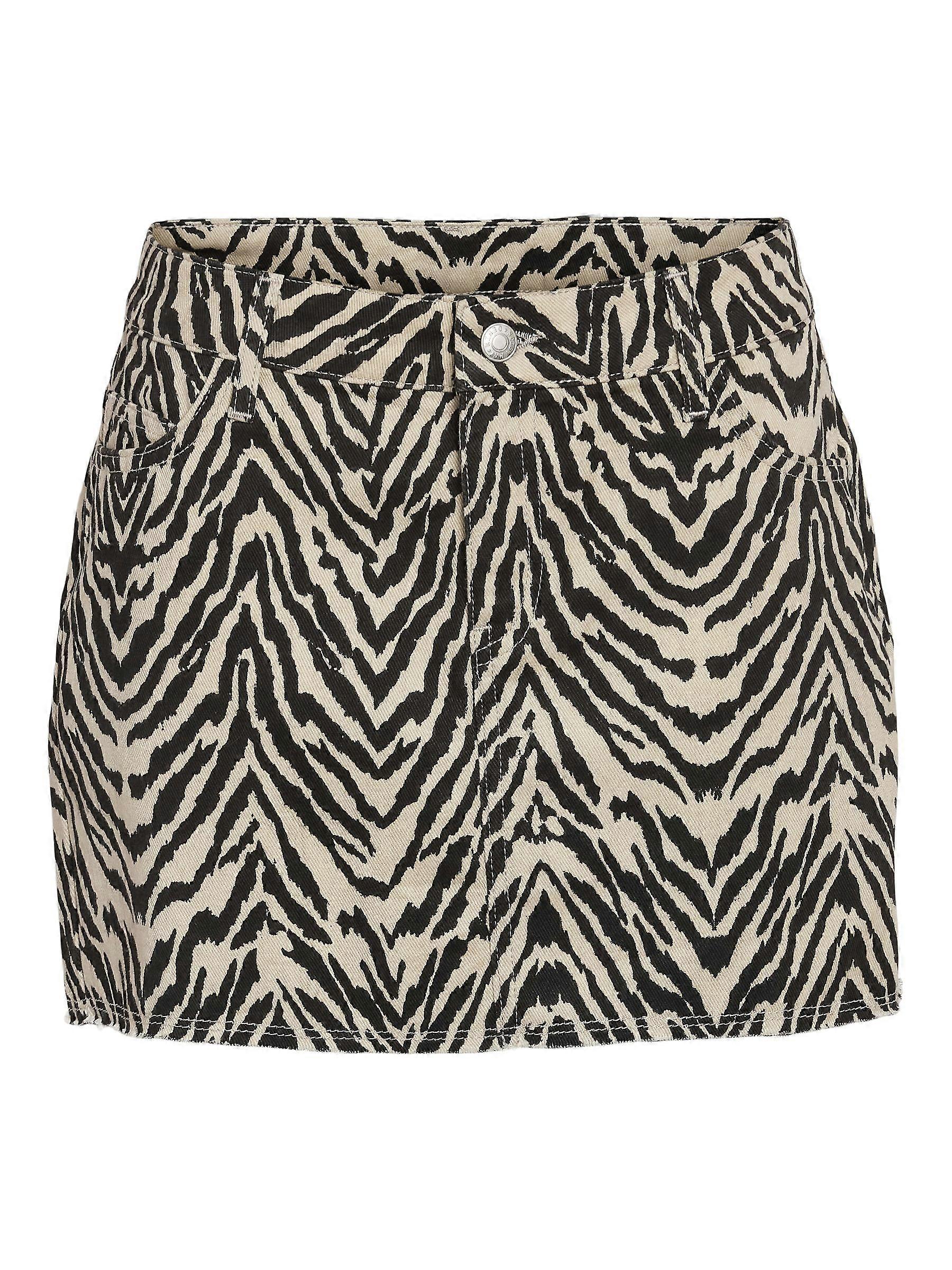 Noisy May Womens Short Zebra Print Denim Jean Skirt 5 Pocket Design