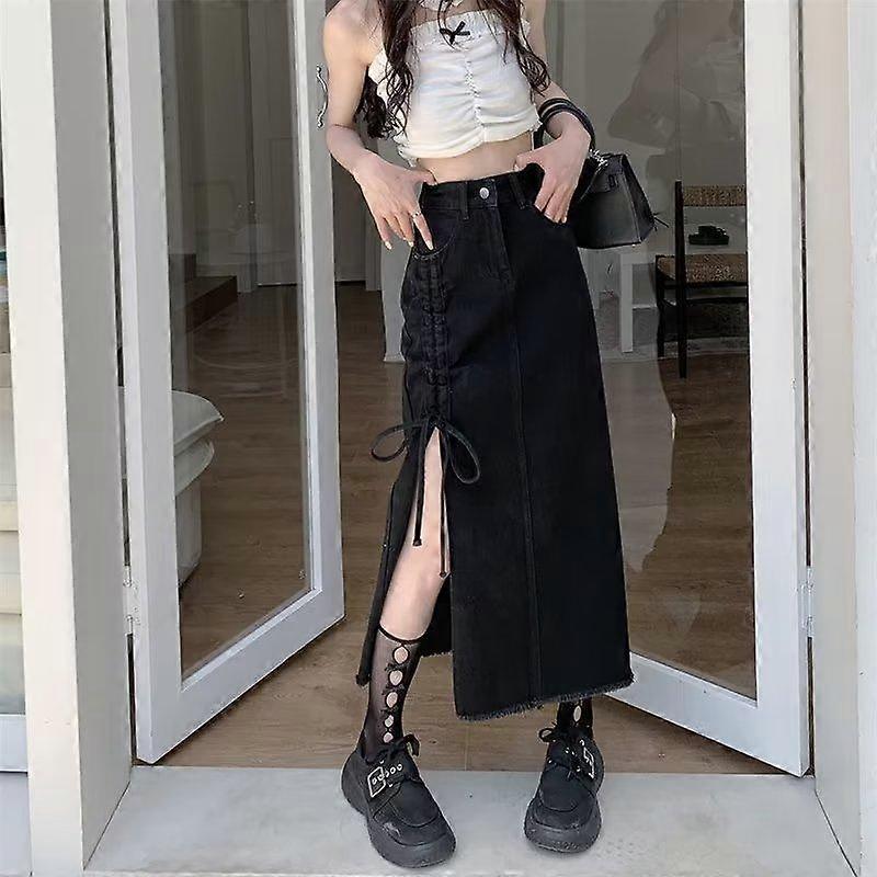 Women's Summer Plus Size Loose Split Half-body Skirt High Waist Mid-length Denim Skirt Half Casual Skirt