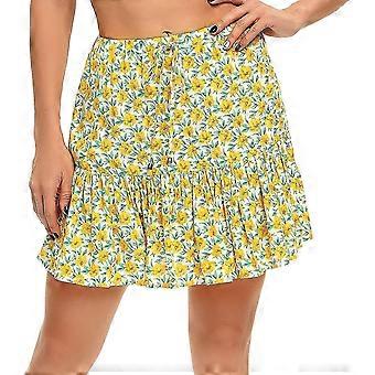 Floral and Solid Ruffled Mini Skater Skirt for Women Size S-2XL