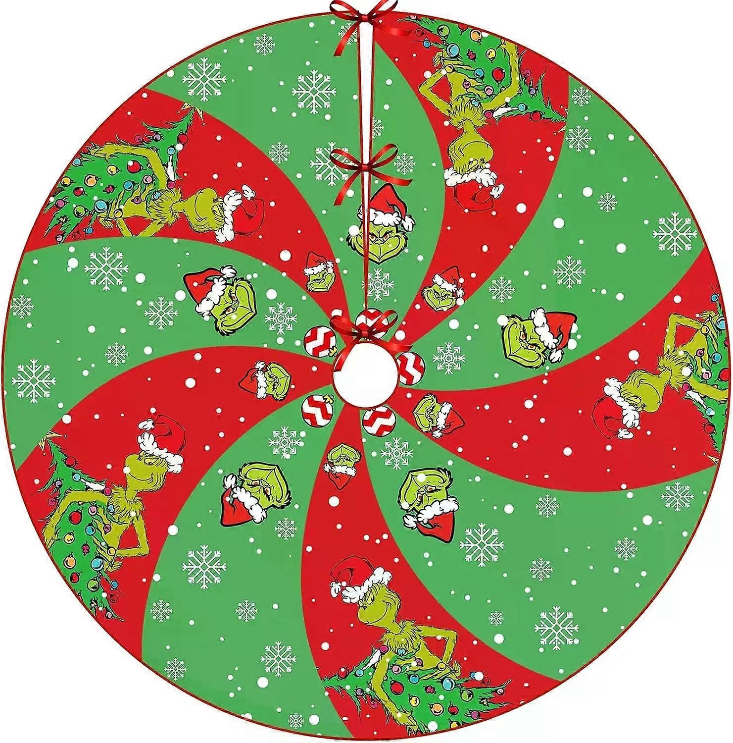Christmas Tree Skirt Red & Green Merry Christmas Tree Skirt Collar Snowflake Christmas Decorations for Tree Xmas