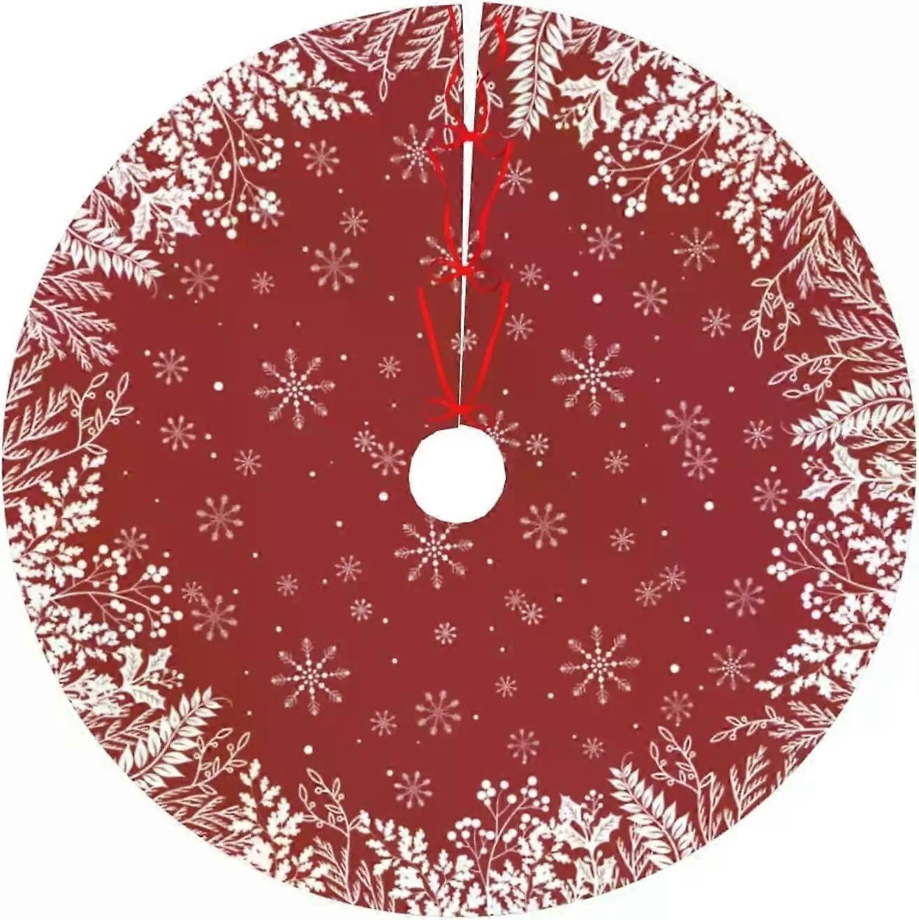 Vintage Red Christmas Tree Skirt Design with White Snowflakes Rustic Winter Farmhouse Christmas Tree Skirt Mat