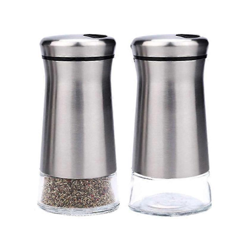 Stainless Steel Salt And Pepper Shakers 2/4pcs Glass Seasoning Shaker With Adjustable Pouring Holes.