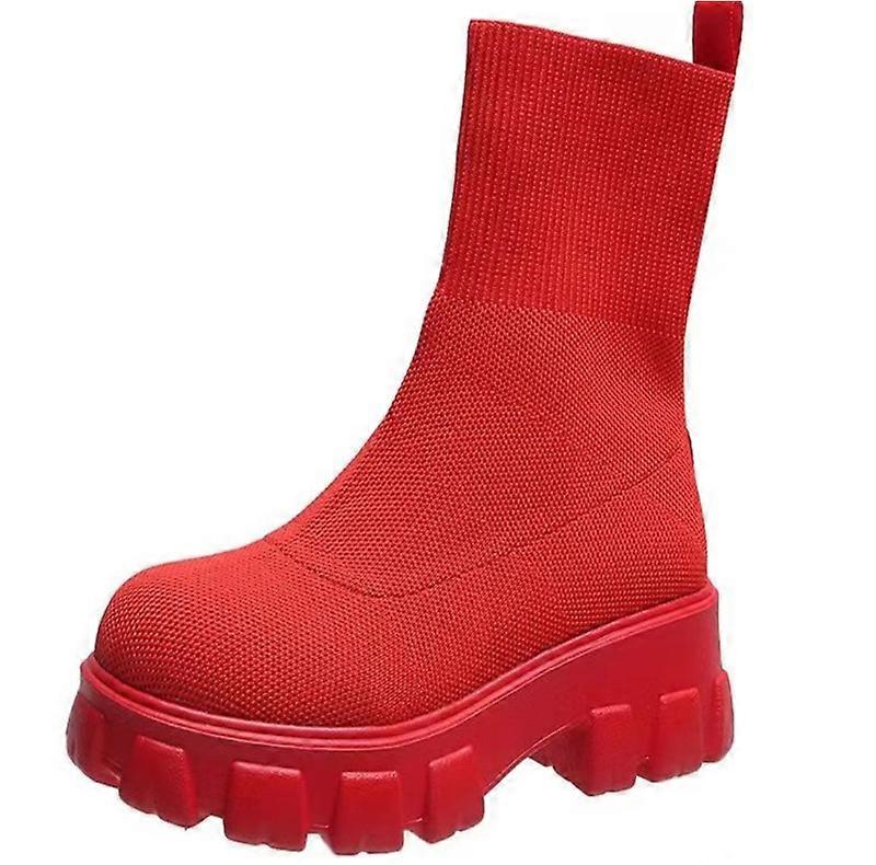 Shoes Woman Boots Knitted Sock Boots Women's Thick-soled Short Tube Breathable Plus Size Boots Platform Booties Heels