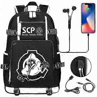 Scp Foundation Mochila Preta Saco Escolar dos Desenhos Animados Para Crianças Adolescentes | Bagpack de viagem com usb, sacos de ombro do portátil