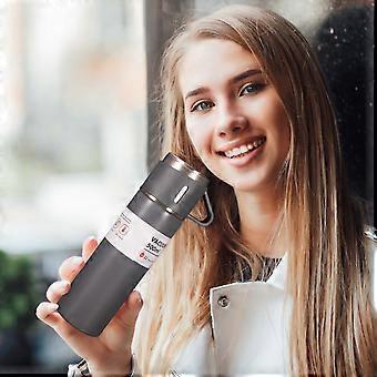 SDJMa Insulated Hot Beverage Bottle with 2 Mugs, Travel Coffee Thermos with Twist and Pour Top, Picnic & Commute Friendly (Gray)