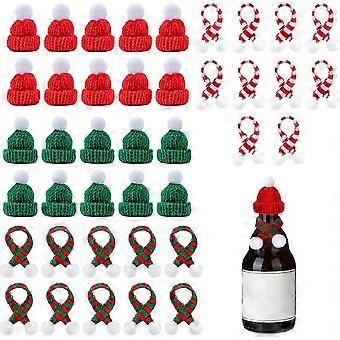 Conjunto de 40 Pcs Mini Chapéus e Cachecóis de Tricô de Natal para Artesanato, Pequenos Enfeites de Boné e Cachecol de Papai Noel