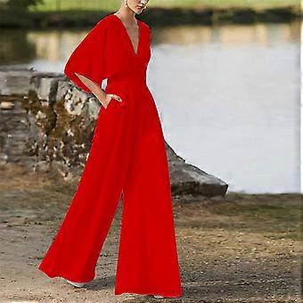 Macacão de Verão Mulheres Casual Geral Senhoras Aconchegante Oversized Leve Romper V-neck sem mangas Calça terno longo Dungarees Work Pants Playsuit Com