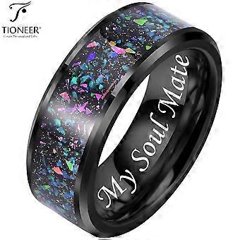 Tioneer Black IP Tungsten Ring Galaxy Series Opal Inlay Wedding Band for Men Women FREE Engraving 8mm