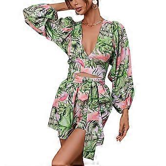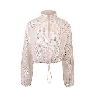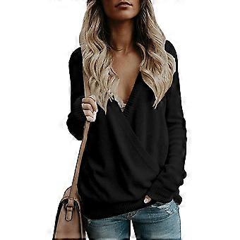 Feminino Notched V Neck Bishop Manga Longa Malha Tee Crop Top