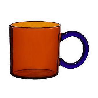 Retro Blue Handle Amber Glass Cup - Multi-Purpose Wide Water Glass
