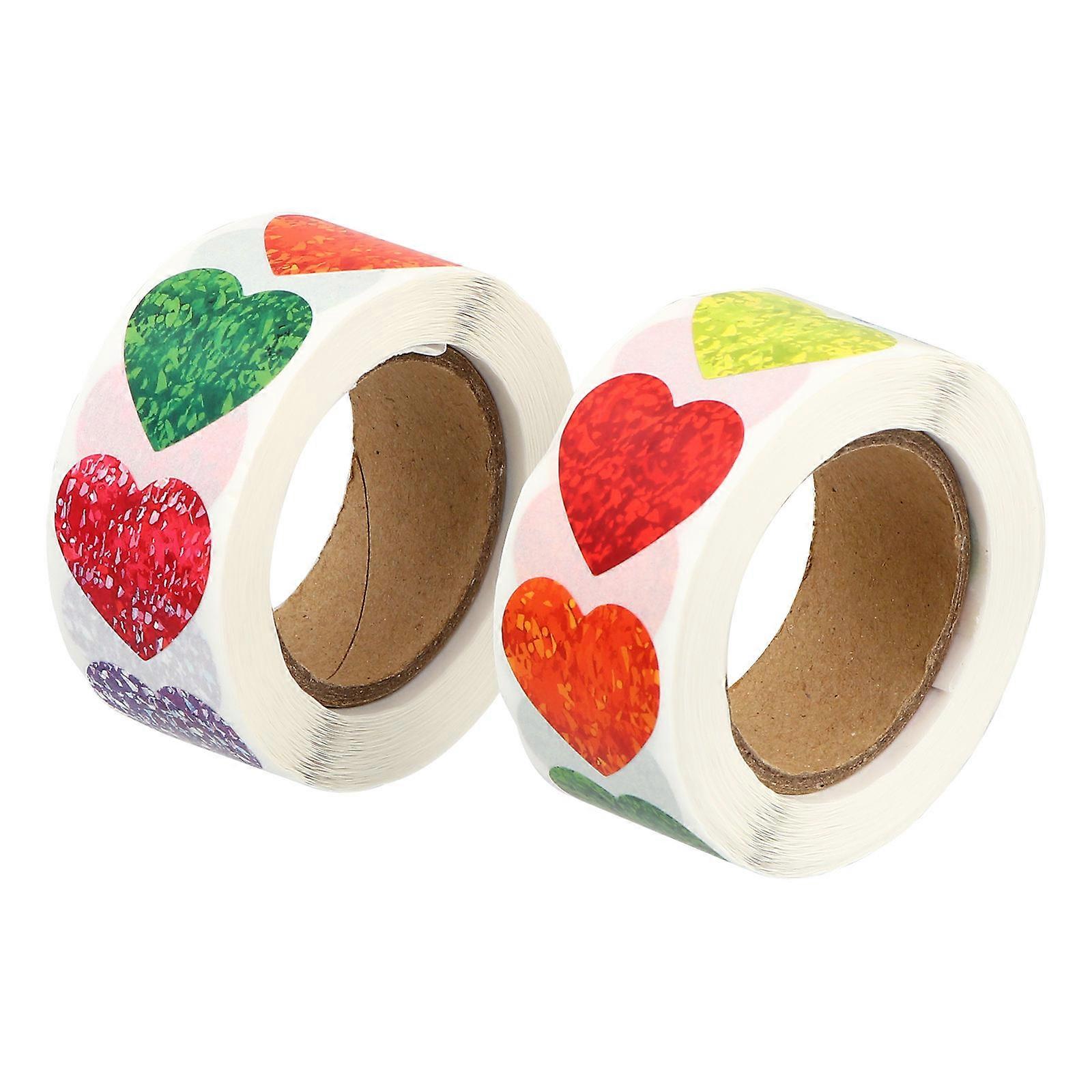Self-adhesive Heart Shaped Stickers 2 Rolls Assorted Color Labels for Valentine's Day Gift Wrapping Diy