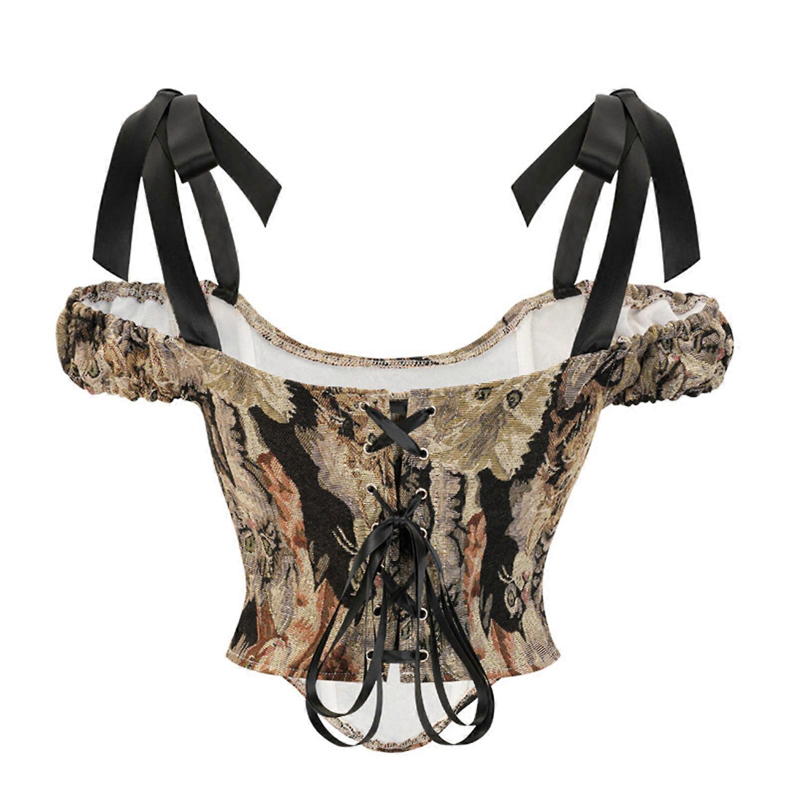 Ladies Embroidery Pattern Vest Elastic Rope Corset with Rope/Zipper Closure Universal Women Banquet Dress Coat Corset A XL
