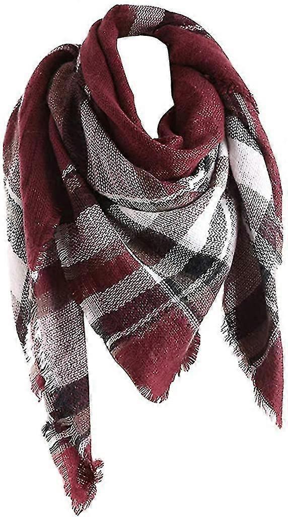 Ladies Warm Soft Knitted Scarf Checked Scarf Red