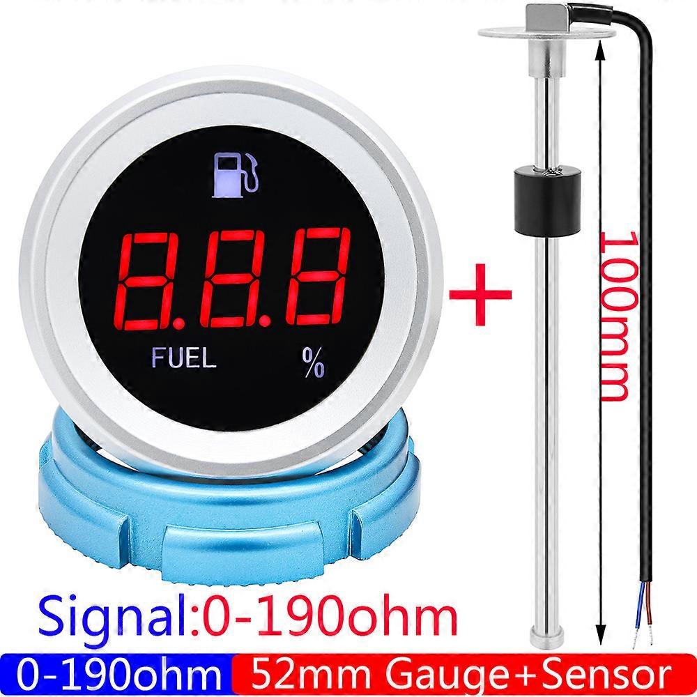 A5 0-190 Ohm Fuel Level Sensor+Fuel Level Gauge 52mm Digital Oil Tank Meter Indicator with Flash Alarm for Car Boat Motor 12V24V