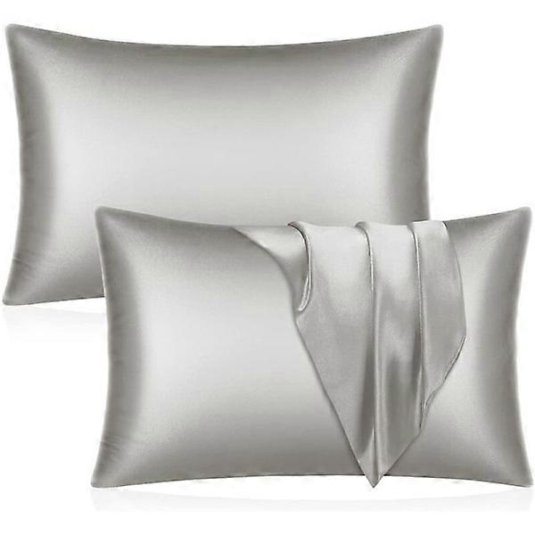 Set of 2 Satin Pillowcases - Gray Pillowcase for Hair and Skin Standard Size with Envelope Closure, 51 x 66 cm