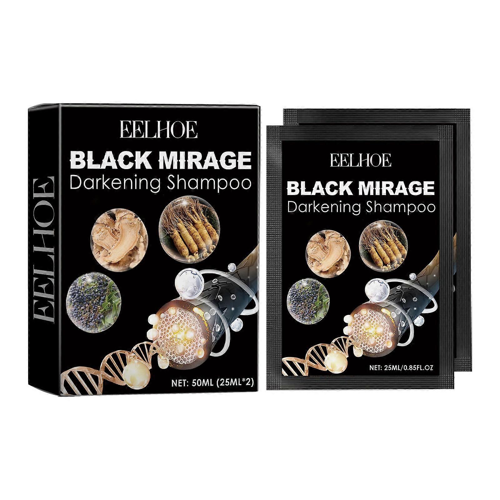 Black Mirage Darkening Shampoo, Ginseng Polygonum Multiflorum Essence Deep Moisturizes Scalp Repair Root Black Hair Care