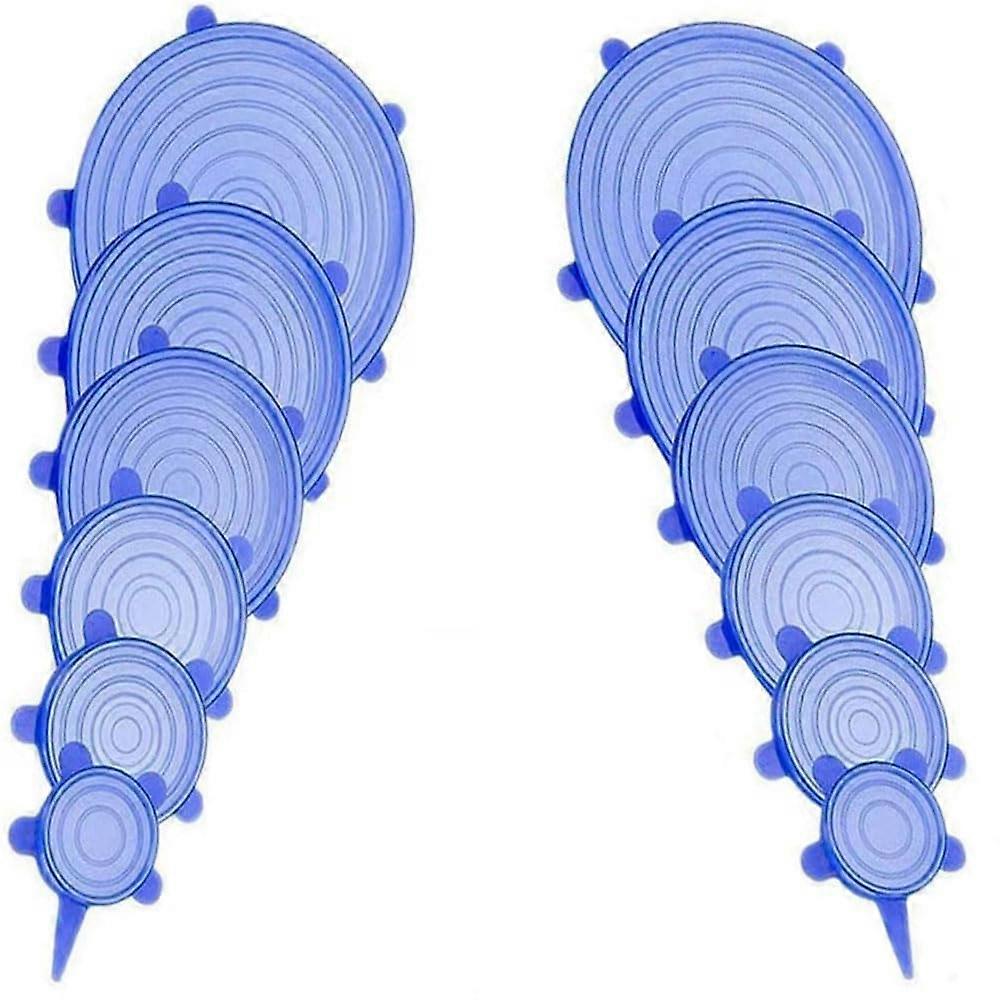 Silicone Stretch Lids Set of 12, Reusable Bowl and Food Storage Covers, Flexible Fit for Various Containers, 6 Sizes, Blue
