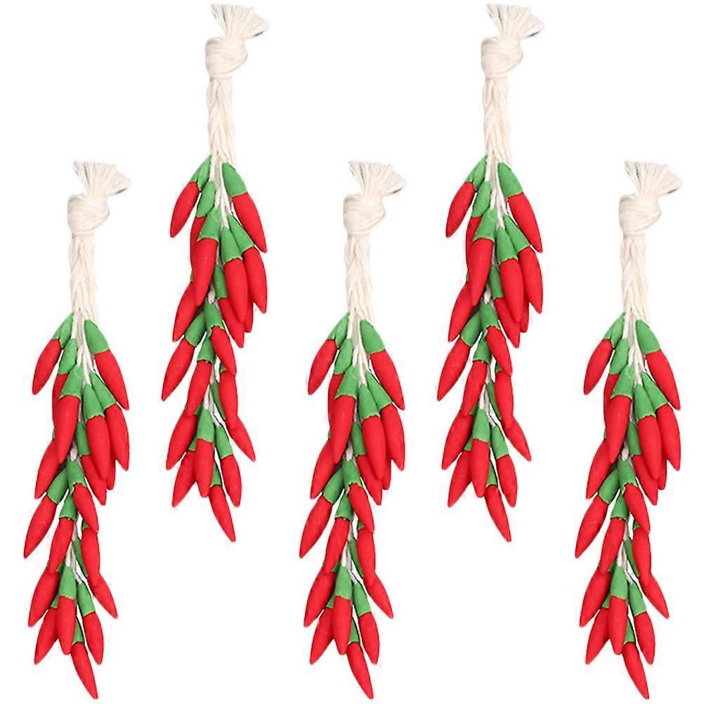 Simulation Chili String Lifelike Chili Shape Home Decoration Assorted Color Resin Decoration 5Pcs