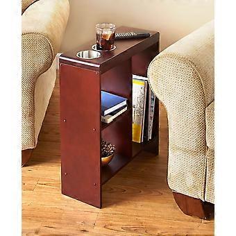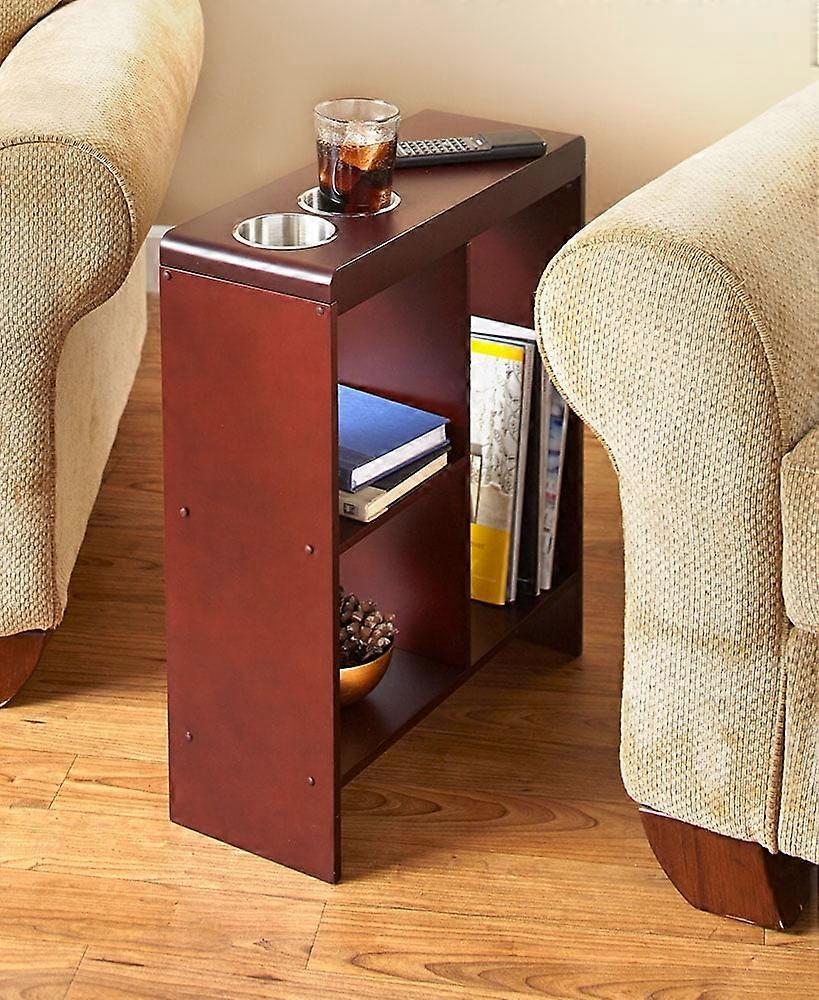 Slim Wood End Table with Drink Holders and Built-in Shelving - Walnut Finish