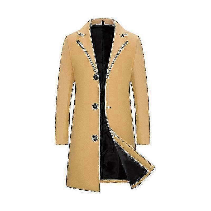 Mens Trench Coat Lapel Single Breasted Long Peacoat Overcoat