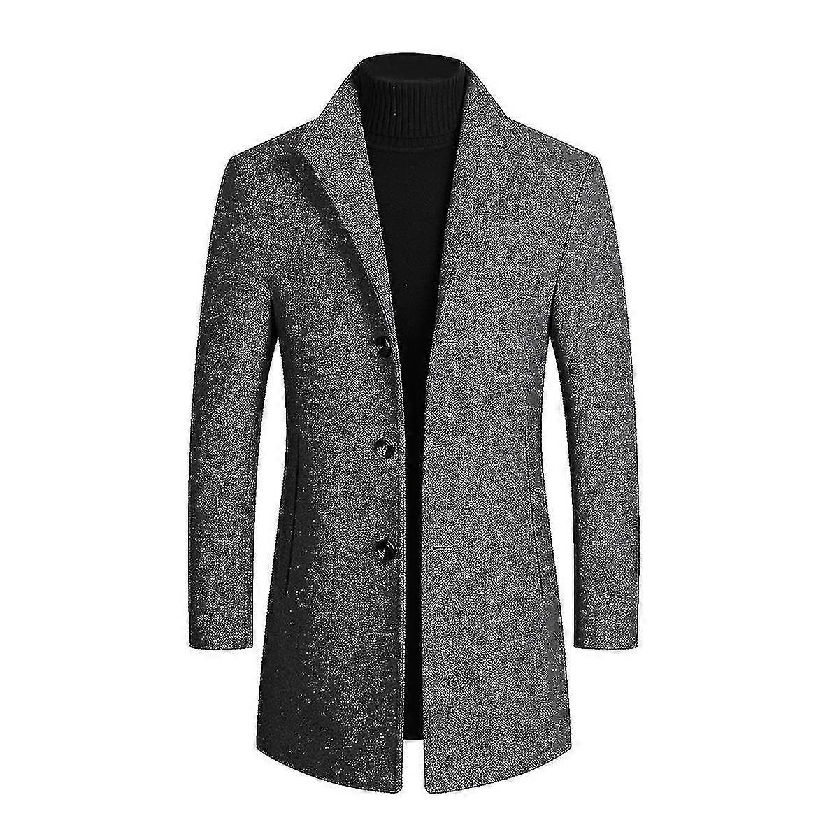 2025 Mens Single-breasted Solid Lapel Thick Wool Overcoat
