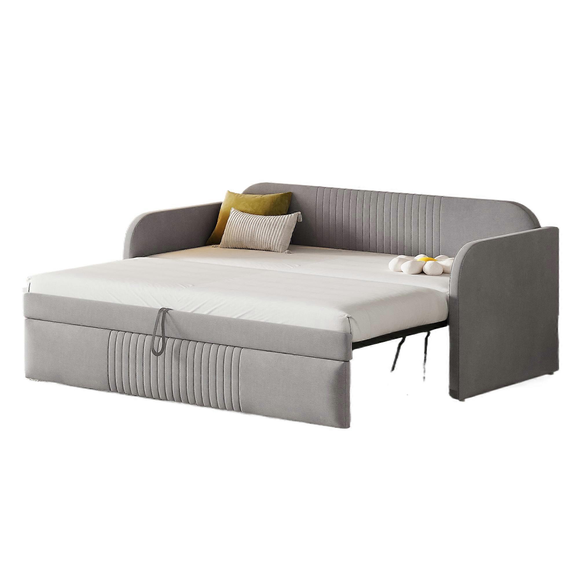 Extendable Sofa Bed Gray Fabric 180x190cm Multi Slatted Stripes