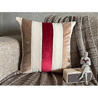 Sofa Cushion Cover 12"x12" Berry, Velvet Patchwork Throw Pillows for Couch, Striped Pattern Modern Style - Compatible with 30x30 cm