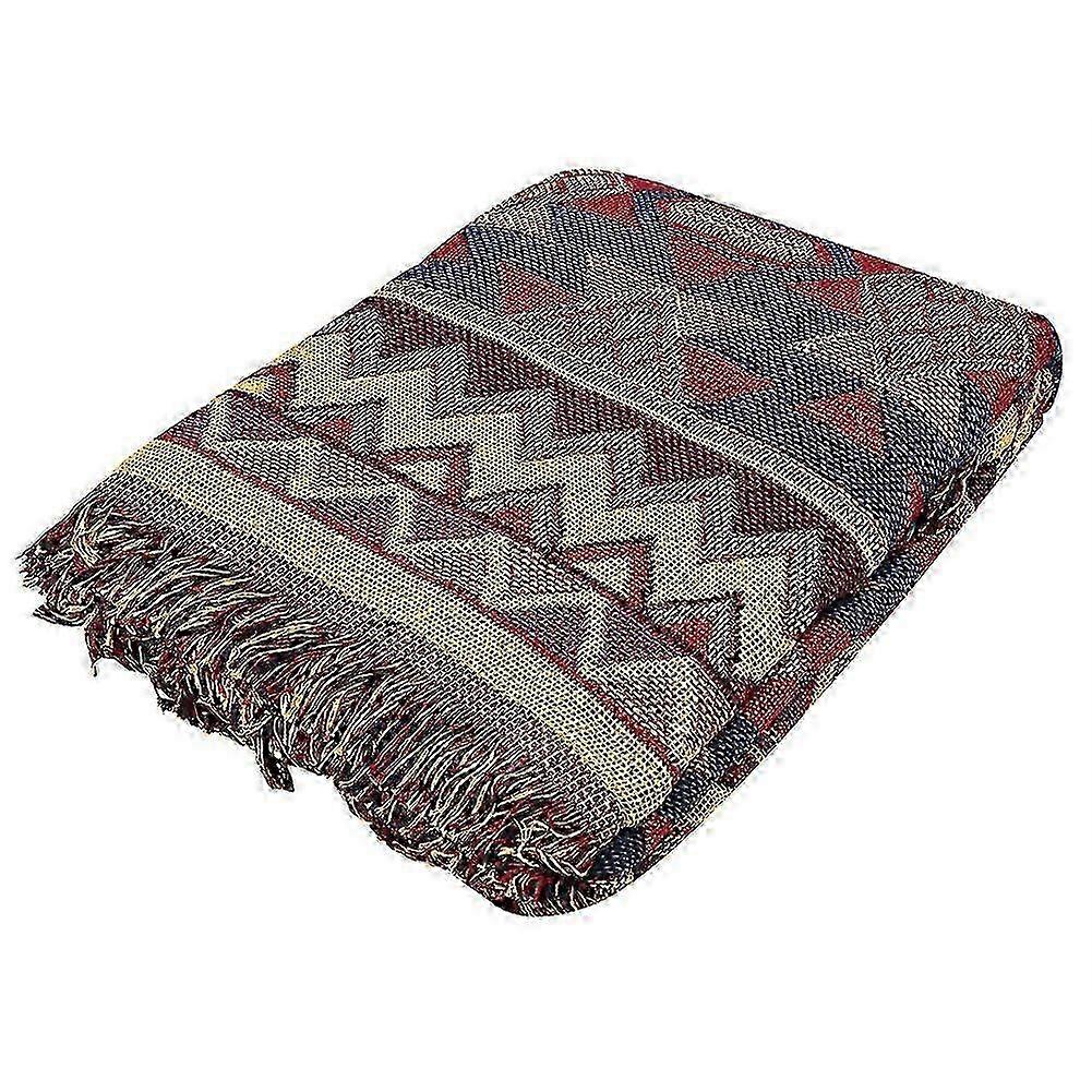 Double Sided Cotton Woven Couch Throw Blanket Carpet with Decorative Tassels for Bed Sofa (#1)
