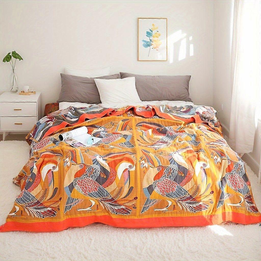 [Soft Bird Blanket] Soft, Washable Multi-Purpose Blanket| Vibrant Bird-Themed Design with Orange, Blue And Grey Bird Mot-azxcv253