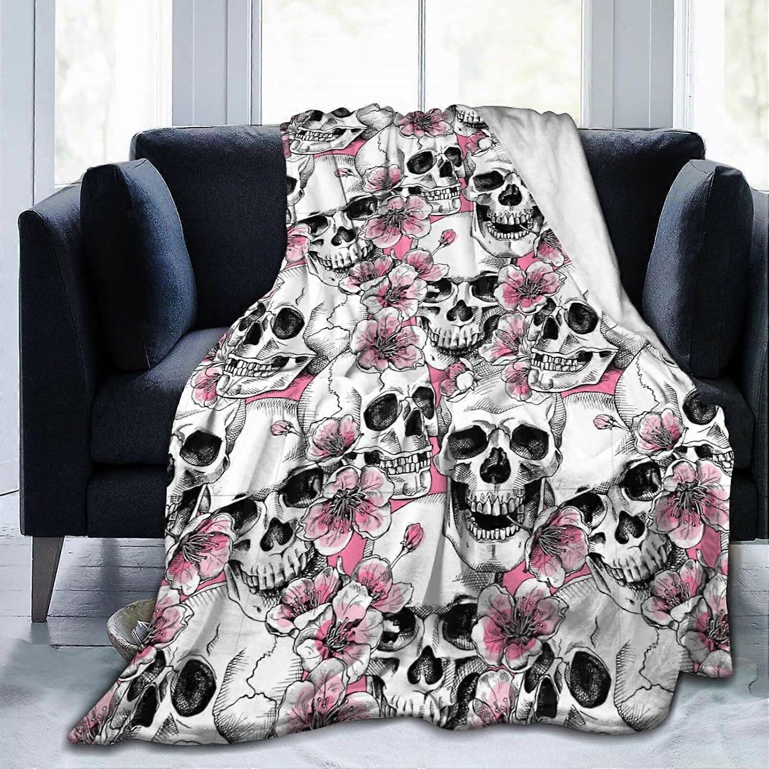 Soft Blanket Skull and Flowers Throw Blankets Flannel Ultra Soft Blankets Durable Anti Static Washable Blanket for Bed S-zxcvb406