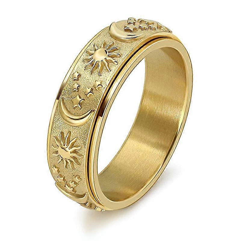 Sun Moon and Star Spinner Fidget Ring for Anxiety for Men Women Stainless Steel Rotating Engagement Wedding Band 8MM