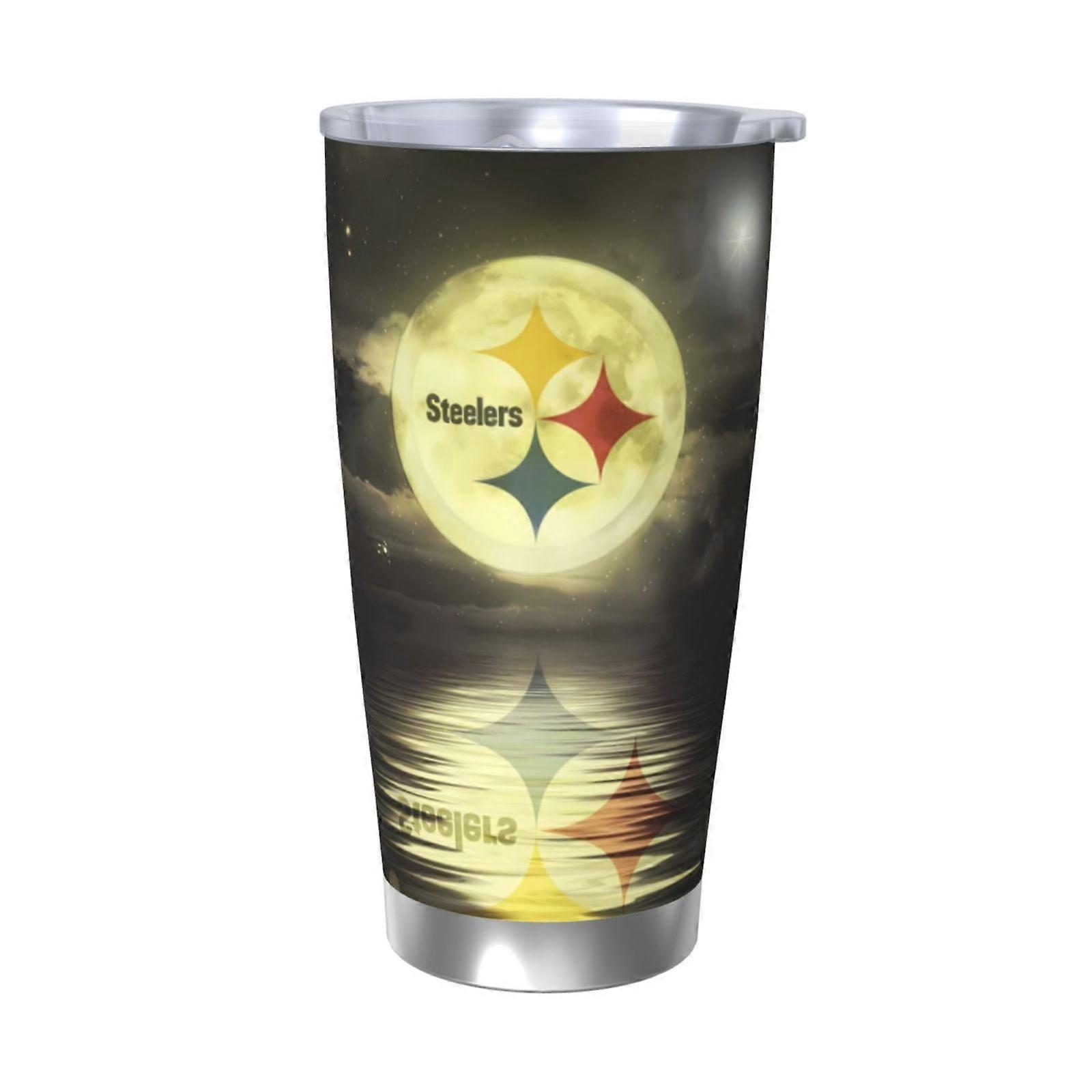 Steelers Football Team Theme 20oz Stainless Steel Thermos Cup with Lid & Straw, Compatible with Car Cup, Hot & Cold Drinks