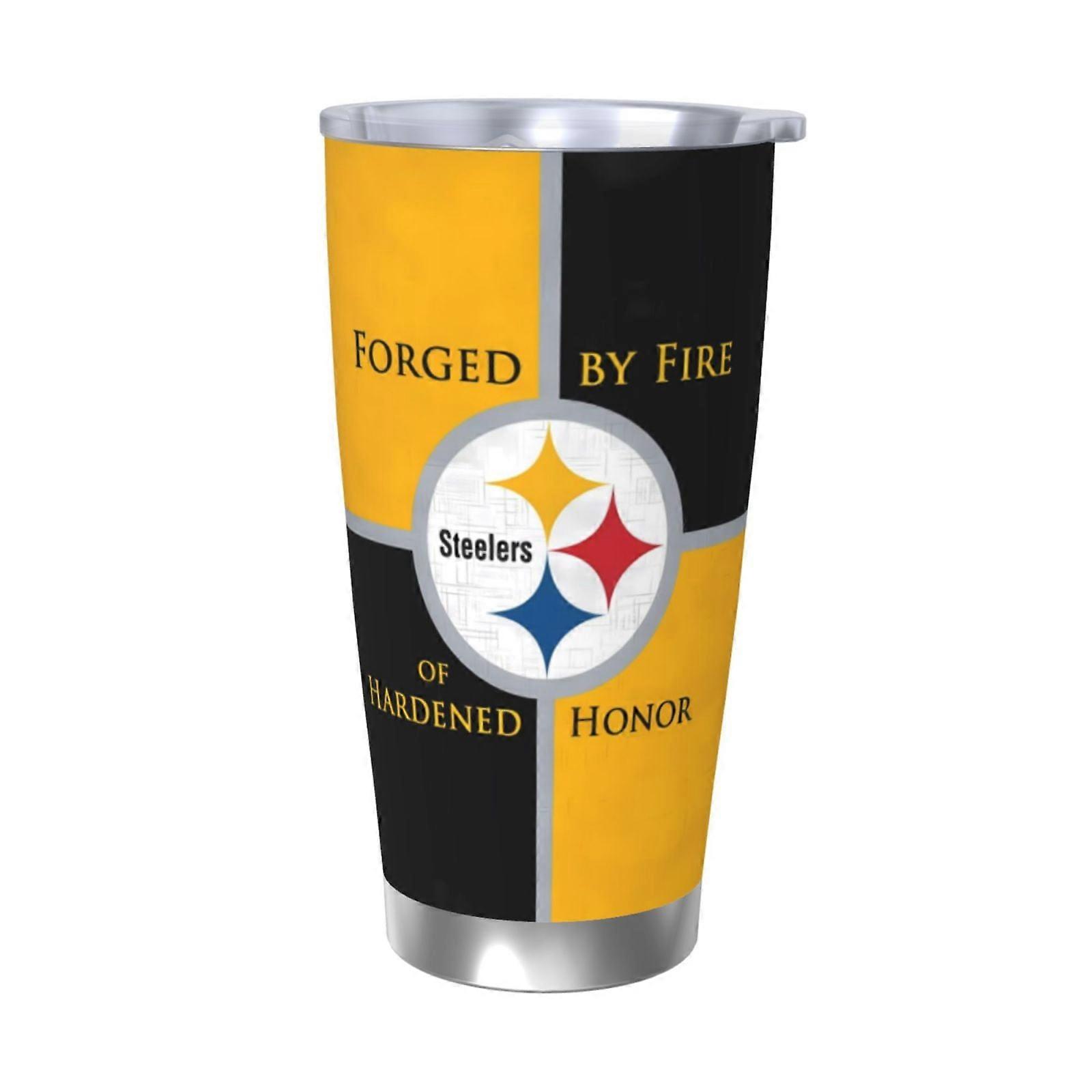 Steelers Football Team Theme 20oz Stainless Steel Thermos Cup with Lid & Straw, Compatible with Car Cup, Hot & Cold Drinks