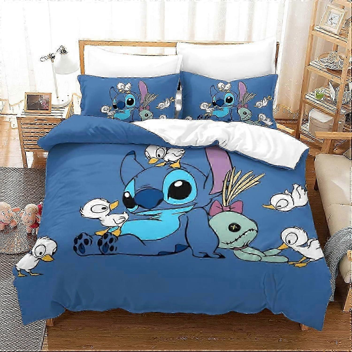 Stitch Animated Characters Duvet Cover,Lilo & Stitch D-Print Duvet Cover Bedding Set,Microfiber,Double Zipperxc 135*200 CM