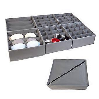 Aufbewahrungsboxen Ordnungssystem 6-teilig für Schubladen aus Vlies in Grau - Zwei 4-Fach Boxen 33x26x11 / Vier 16-Fach Boxen 28.5x26x11 cm